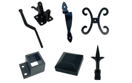 Finials / post caps / trim / base / rail brackets in aluminum / steel